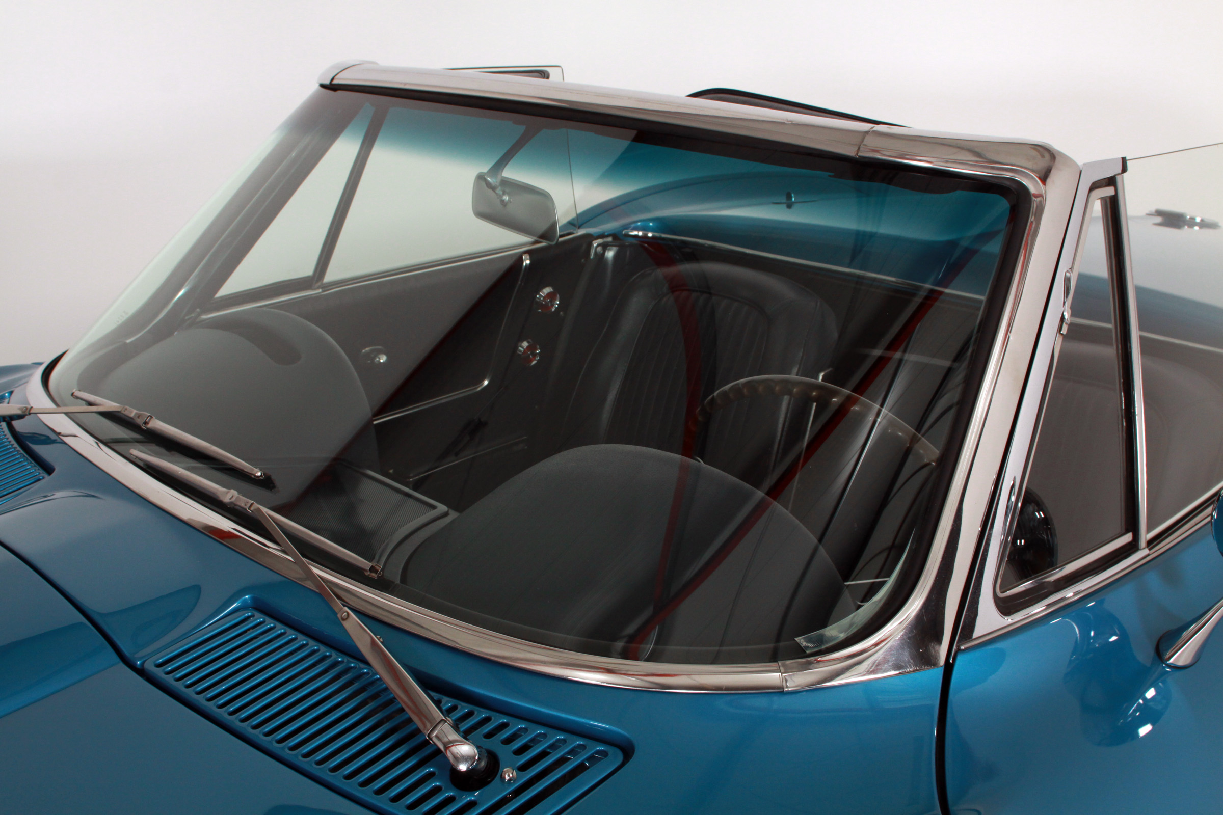 Adembenemende gedokumenteerde frame-off restauratie! Uit Colorado (USA) is binnen gekomen deze schitterende Corvette C2 Sting Ray Convertible. Uitstekende eerste klas lak in prachtige kleurencombinatie 'Nassau Blue' met donkerblauw interieur. Uitgerust met 'matching numbers' L76 V8 motor 327ci (5.4 liter, 340 Pk). Correcte Muncie handgeschakelde 4-speed versnellingsbak, Hurst shifter, sidepipes, Knock-Off style velgen met whiteline banden, werkende klok, prachtig chrome, softtop dak (nieuw) in stemmig wit. Eerste jaar van de Corvette Sting Ray en extreem mooi. Uitgebreide documentatie van de restauratie d.m.v. rekeningen en foto's. Inclusief 1963 Corvette assembly manual. Tellerstand 92.286 (afgelezen). Invoerbelasting EU reeds voldaan en bij de prijs inbegrepen. Direct leverbaar. Consignatieverkoop.